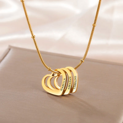 Lemegeton Customize Name Love Necklace 1-4 Heart Pendant Personalized Engraved Name Stainless Steel Jewelry Couple Family Gifts